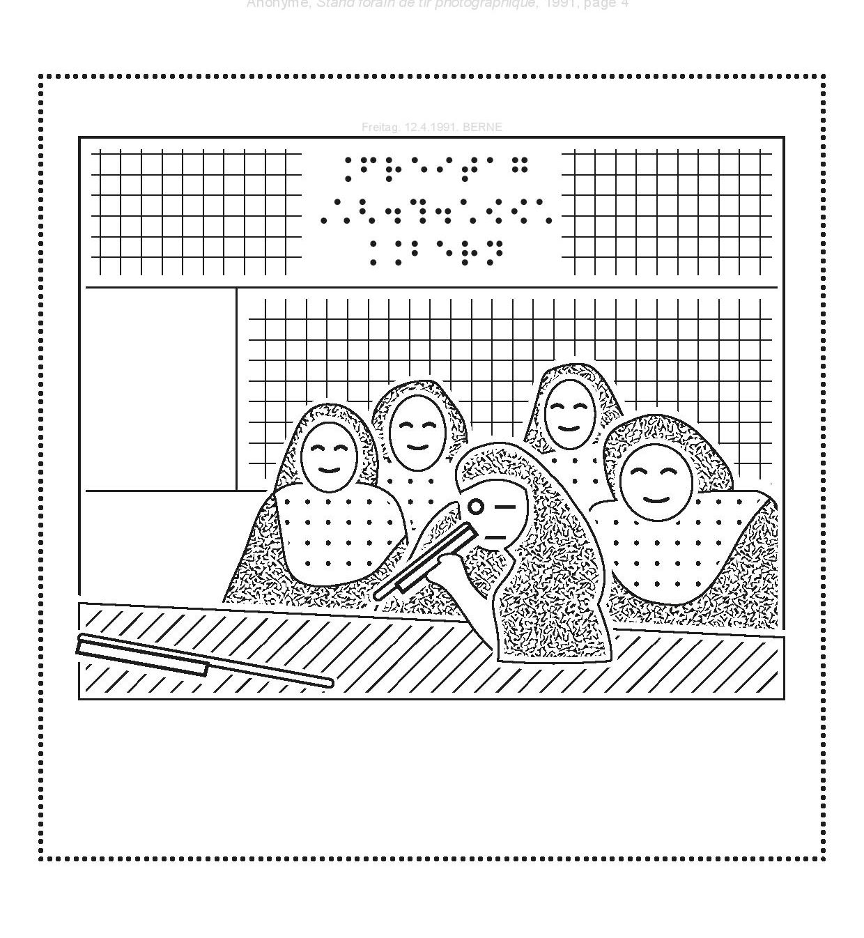 This autonomous activity begins with the reading of the text, introducing the artwork. It details the composition of the image and places the photograph in its historical, technical and aesthetic context. Then, the analysis of the tactile image starts. Along with its legend in braille, the duo decrypts the various elements of the artwork.