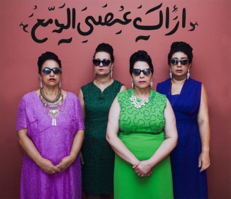 These artworks were created apart from the film, which relates the story of Mitra, an Iranian film director living in exile, who embarks on her dream project of making a film about the legendary Egyptian singer and diva Oum Kulthum. Inspired by classic 1950's Egyptian movie posters, the eight photographs feature the actresses of the film in portraits of Oum Kulthum at different stages of her life and career... Frontal and striking images that attempt to capture the mythical nature of the famous Egyptian diva.
